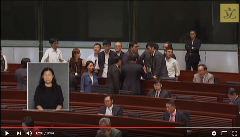 ▼ 遭立法會禁止進議場的梁頌恆、游蕙禎,這次在民主派人牆護衛中闖入。(圖/翻攝自香港立法會YouTube)