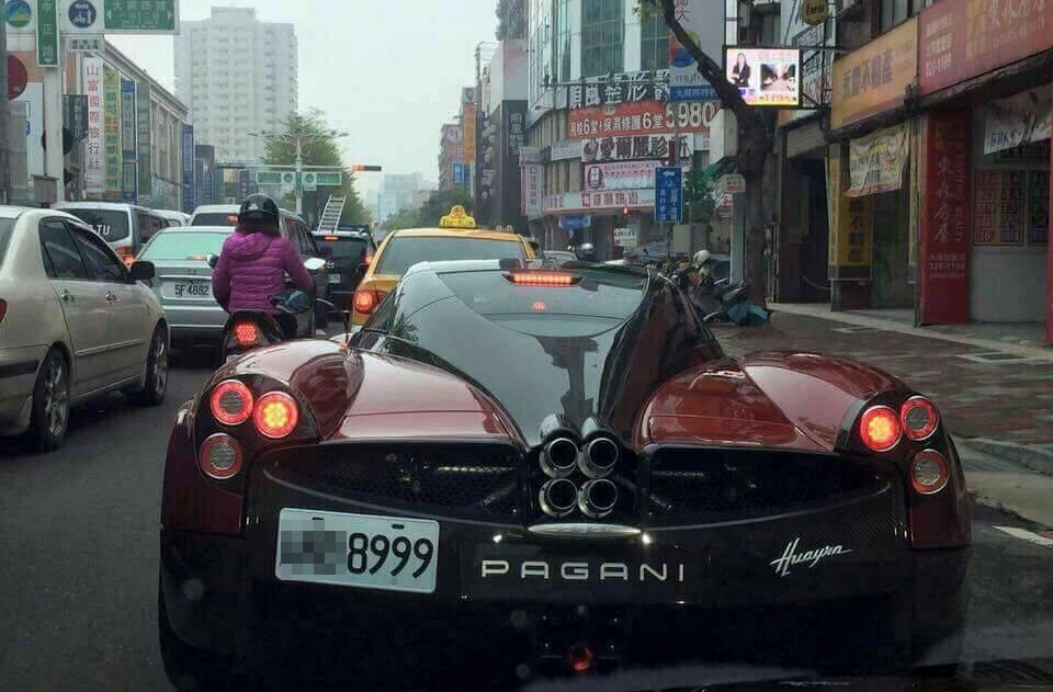 林姓網友26日在「爆料公社」貼文,指在路上直擊台灣第一輛1億元超跑,實際看到領牌上路的「帕加尼風神」,肯定相當震撼。照片貼上網,吸引大批網友熱烈討論,眾人貼心提醒千萬要保持好車距,「記得離遠一點」、「這家的車只能膜拜惹」、「我發現越貴的車外型越特別欸」、「不小心撞到會想哭呀」、「太威了吧,開一棟房子在街上跑的概念」、「這台大家自動遠離,買好車也是有好處的」、「就算車牌再怎麼醜,也蓋不住帕加尼風神的風采。」