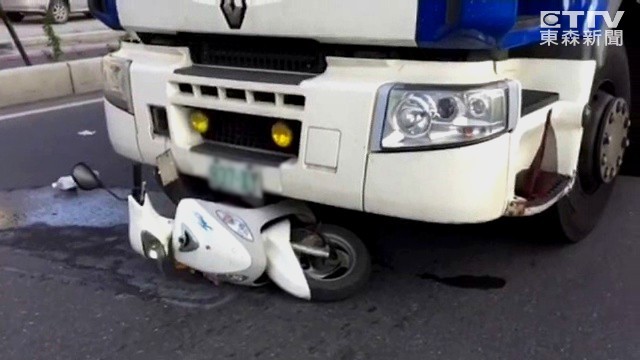 這輛中油槽車載著丙烯,下午2點多行經行經漁港、新生路口,右轉時和一輛雙載的機車擦撞,整台機車卡在車下,坐在後座的8歲男童遭卡左後輪慘死,騎車的36歲莊姓婦人則是臟器外露,緊急被送往高醫急救,到達醫院時已經休克,情況相當危急,仍在搶救中,經警方初步調查,2人關係是母子,男童父親到場跪地痛哭。