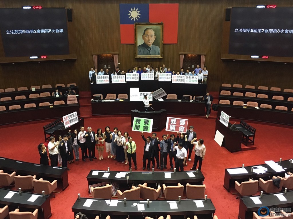 ▲國民黨立法院黨團占領主席台。(圖/記者徐政璿攝)