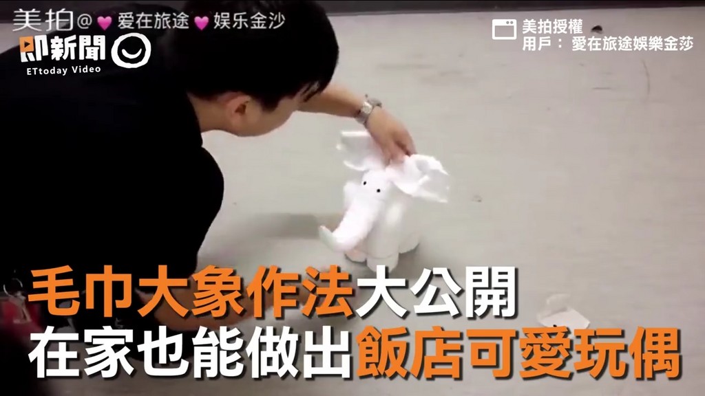 人們出外旅遊住在飯店時,常常一進房間就可看見床上有用毛巾摺成的大象,讓人覺得相當可愛。也有人好奇,要怎麼把毛巾摺成大象呢?網路上有一位網友認真拍了教學影片,並教大家如何在家也能摺出像飯店一樣的可愛大象,就讓我們看下去!