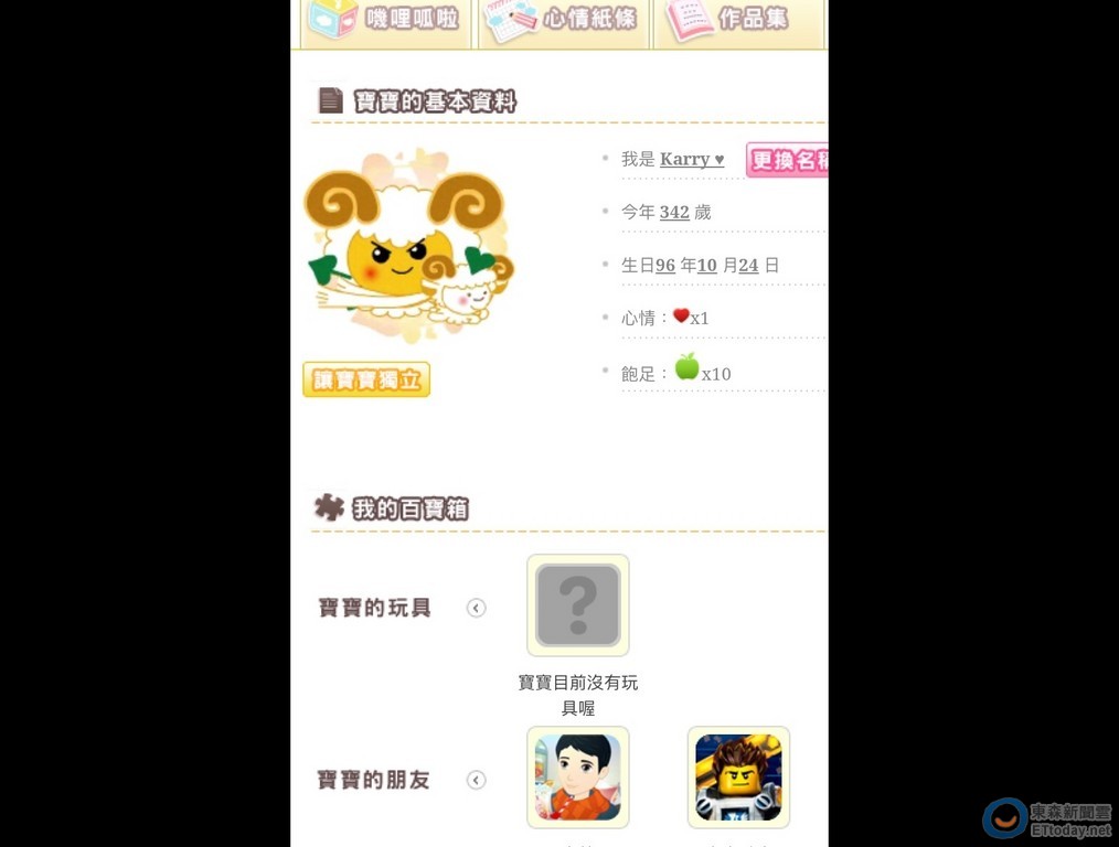 「番薯寶寶」是許多人的童年回憶,但對1名台南應用科大的女同學來說竟然還是「現在進行式」!她PO出網頁截圖,表示自己從民國96年(西元2007年)養到現在近10年,小番薯已經從「寶寶」變成342歲的「番薯精」,讓許多網友驚呆了。