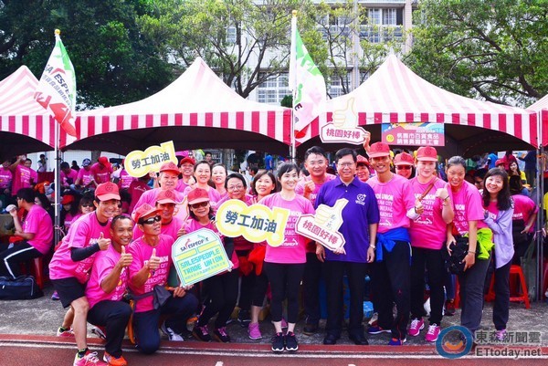 「105年桃園市勞工趣味競賽」、30日於桃園區中興國中舉行。市長鄭文燦指出,一個國家要進步,要讓勞工與企業都能同時成長。目前工會的普及率不到三成,他鼓勵工會普及率要提高,勞工才會有依靠,並以對等方式召開勞資會議,建立協商機制。