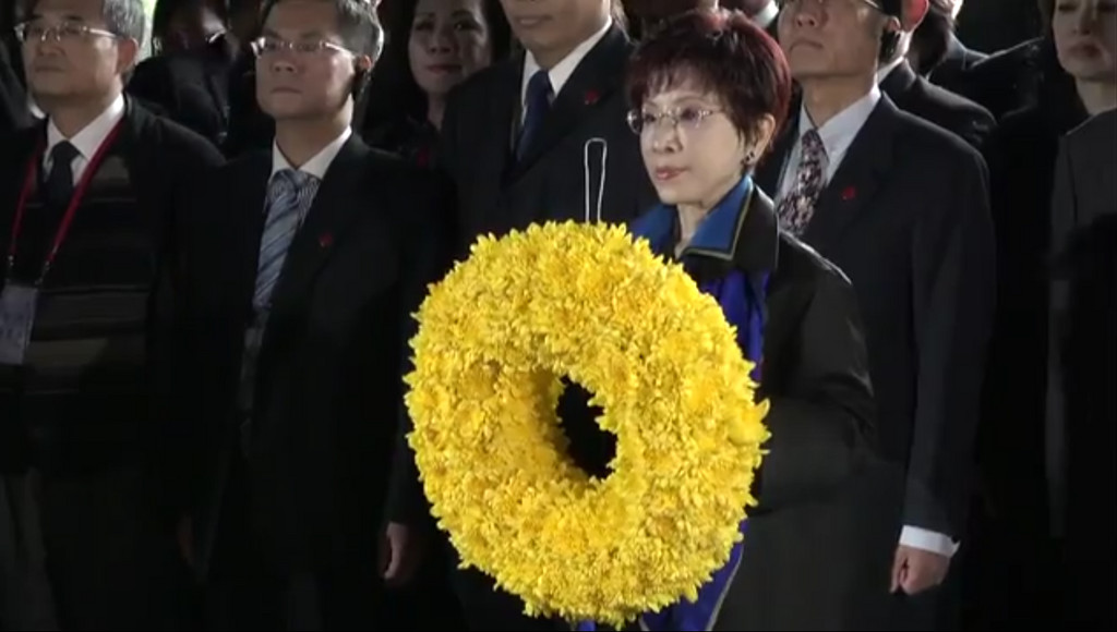 民國一百零五年十月卅一日,中國國民黨主席洪秀柱,代表全體黨員,謹以鮮花致祭於總理之靈曰: