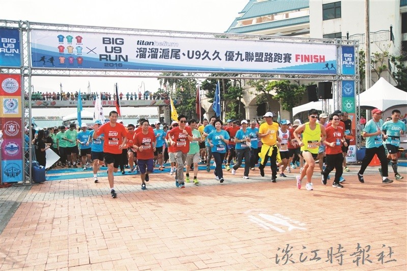 22日的淡水漁人碼頭活力四射!為提升校園運動風氣,強化師生健康體魄,並增進各校學生及教職員工間的交流,淡大與大同、世新、東吳、輔仁、文化、銘傳、北醫、實踐9所大學聯合舉辦「溜溜滬尾、U9久久 -優九聯盟路跑賽」,並由本校體育處承辦,共超過萬人參與路跑,壯觀的場面,在空拍機下一覽無遺。