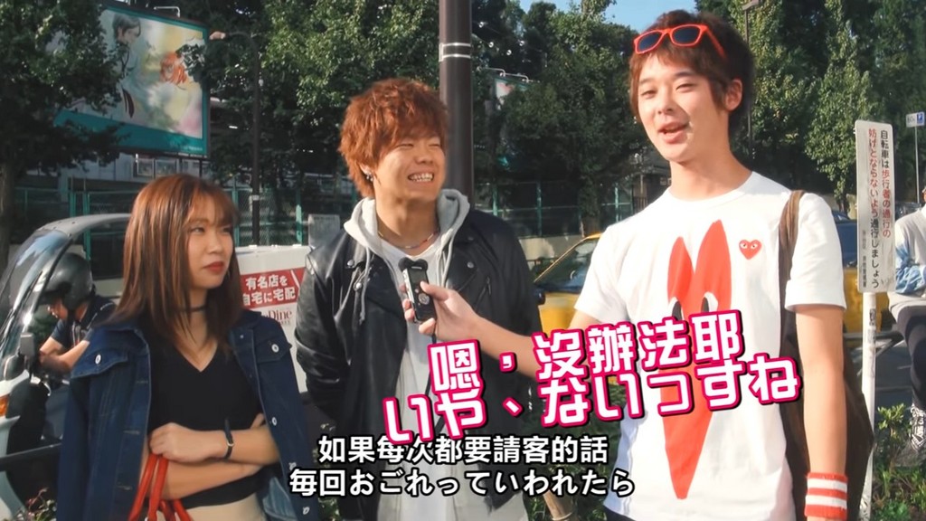 在影片中,一對日本情侶被問到吃飯都由男生埋單的看法,男生說要看時機和狀況,「沒辦法每次都請客,覺得別鬧了」;女方則說,不會讓男友請客,「我會很愧疚」。