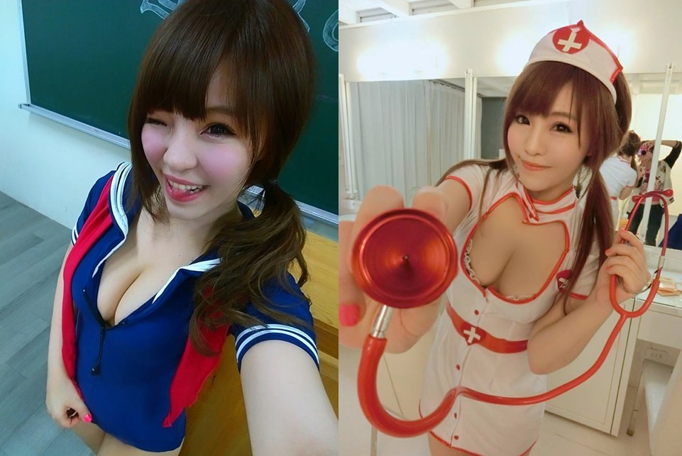 ▲穿護士裝卻拿著骷髏頭的佳霖,有一種充滿邪氣的妖豔美。