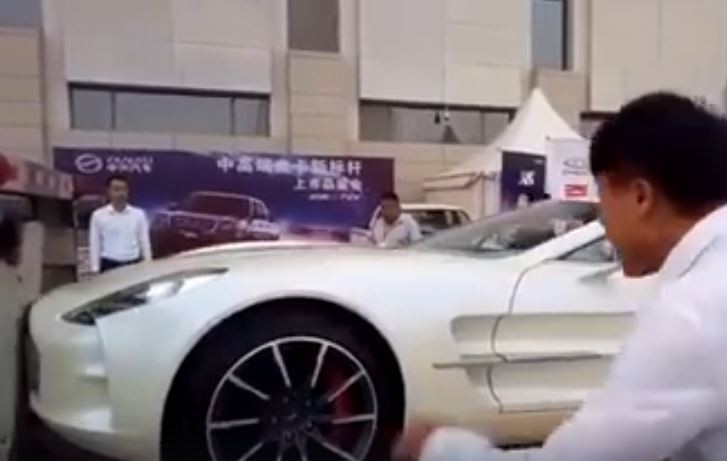 一名網友在臉書社團「聯結車 大貨車 拉拉隊 照片影片資訊分享團」分享了一部影片,從背景研判,拍攝地點在中國大陸。影片中,一名男子駕駛著一輛奧斯頓馬丁one 77,正準備開上貨架;而旁邊的工作人員也相當謹慎,還不斷地用手指揮,但駕駛疑似不熟悉性能,又沒抓準距離,竟直接撞上貨架底部。
