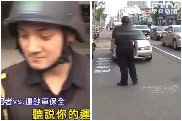 「聽說你的運鈔車被拖走喔?」面對提問,保全一臉尷尬,不斷否認「沒有沒有」,但是馬路上被用粉筆清楚寫下車牌號碼訊息,想賴都賴不掉。有目擊民眾指出,「那時候剛好垃圾車來,我們都在,他那個車子走了,那2個就揹錢出來,從那邊跑出來了啊,當然是很誇張啊,連運鈔車也會被拖吊。」