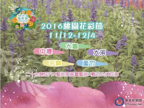 桃園市政府副秘書長邱俊銘2日指出,第二屆桃園花彩節活動,11月12日起至12月4日展開,於中壢、大溪、蘆竹、大園及平鎮五大區舉行,花卉展區總面積約25公頃,邀請桃園在地藝術家,與在地社區或學校結合,創作多項裝置藝術品「花彩洋藝」,帶動花卉產業。