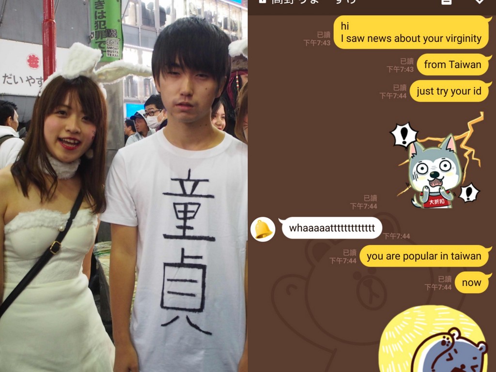 一位日本東京大學二年級的高材男大生高野,為了擺脫「處男身份」,在萬聖節穿上寫有「童貞」的T恤走上街頭,吸引不少女孩合影,這新聞經過台灣媒體報導,因「童貞男」自備的LINE ID紙條照片被完整曝光,新聞在PTT引發熱烈討論,數十位網友還加了高野的LINE,讓高野相當驚訝。
