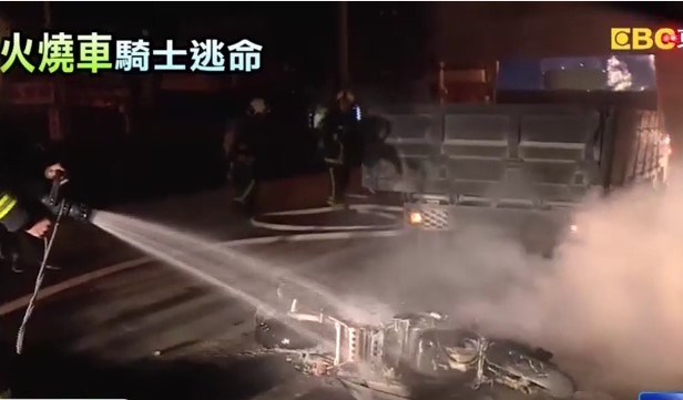 當時卡車在基隆路和八德路口停等紅燈,這輛機車疑似煞車不及直接追撞,瞬間起火燃燒,幸好余男趕緊把廖男拉開,才沒有被火波及。消防隊員獲報趕到現場,迅速撲滅火勢,將廖男送醫治療,機車已經燒得只剩骨架。至於詳細肇事原因,警方還要釐清。(新聞來源:東森新聞)