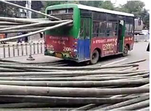 目擊者表示,「小貨車上載滿了長約10幾公尺的竹子,根本早已超過小貨車的車身,事發當時並沒有和公車相撞,可能是因為煞車不當導致竹子噴飛。前方公車突然遭到數十支柱子貫穿後方玻璃直插進車體,路人全都看傻了眼,當下所有乘客立即被司機疏散下車。」