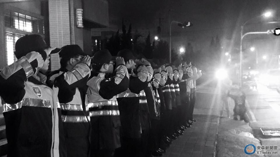 ▲同袍淚眼敬禮「任務結束了」。(圖/桃園市警局)