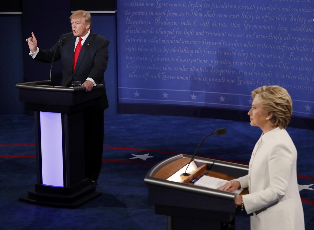 ▲美國大選第三場辯論會,川普希拉蕊彼此沒有握手。(圖/路透社)