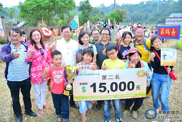▲客庄稻草藝術創作大賽首獎作品是「童心未泯」。(圖/桃園市政府提供)