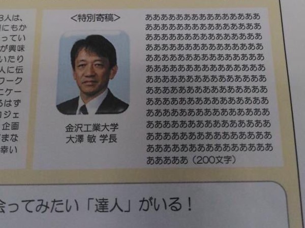 根據日本媒體《j-cast》報導,最近在推特上流傳一張照片,引發日本網友的熱烈討論。日本金澤工業大學的學校資料內,一名畢業生的說明欄內,竟然寫下了200個「あ」(啊),讓發現的網友以為「這學長腦袋怪怪的」?