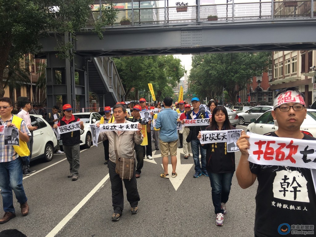 ▲工鬥成員絕食90小時,繞立院一圈遊行抗議。(圖/記者徐政璿攝)