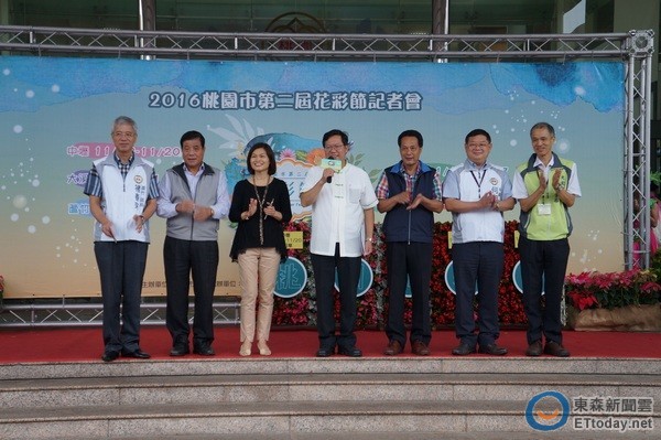 ▲桃園市第二屆花彩節,首場於11月12日在中壢區展開,區長林香美(左四)邀大家來漫遊花海。(圖/記者楊淑媛攝)