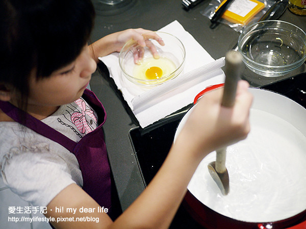 煮蛋:之前已經聊過如何帶孩子打蛋,這個是蛋黃如果破了,就無法倒入水裡煮喔!因為這樣蛋黃會流入水中,無法成完整的型。