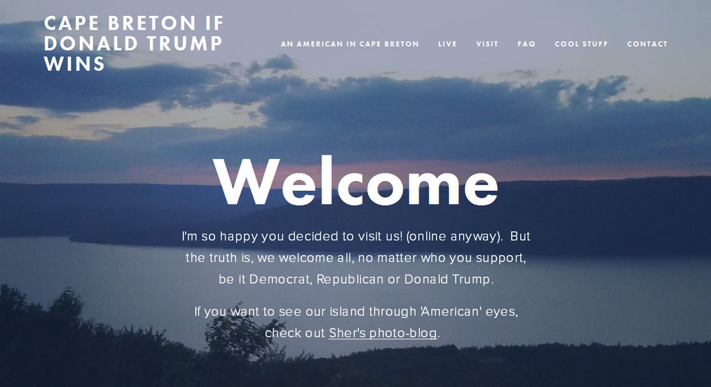 而根據加拿大媒體《CBC News》報導,加國新斯科細亞省北部小島「布雷頓角」島,有居民在今年2月間抱著開玩笑的心態,設立一個「如果川普贏了」網站,歡迎美國人移居該地,並提供簡單的移居資訊。原本只是個玩笑話,結果隨著選戰倒數,網站流量也跟著暴增,單是11月7日、選舉前一日,網站就有超過1萬次點擊。