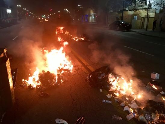 位在加州舊金山奧克蘭城市居民,深夜紛紛上街抗議,畫面上可看到民眾在大馬路上,焚燒物品抗議,警方接獲通報,立刻趕到現場處理。