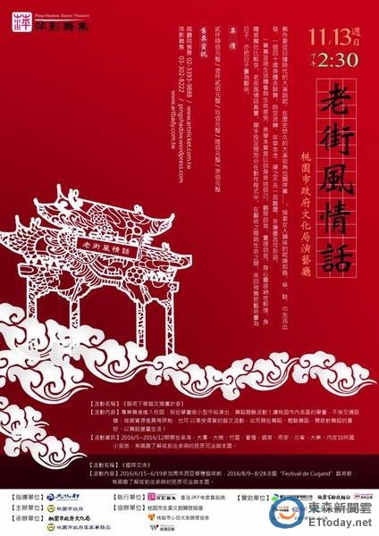 桃園市萍影舞集2016年度公演《老街風情話》,於13日(週日)下午2點30分在桃園文化局演藝廳演出。此次演出與桃園市生香文教關懷協會、國巨洋傘、桃園百齡扶輪社等單位共同合作,並邀請香港JAY舞團參與演出,盼能結合各界力量,推動社會公益和藝文活動。
