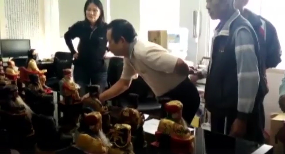警方指出,林、張2嫌將得手的神尊藏在大村鄉一處廢棄倉庫內,現場共有40多尊神明,由於數量太多,廟方人員到場一時之間也認不出到底哪尊才是自家神明。
