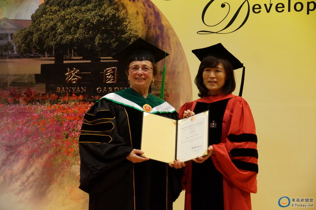 ▲成大蘇慧貞校長(右)頒授名譽博士學位,授予zena werb教授。(圖/成大提供)