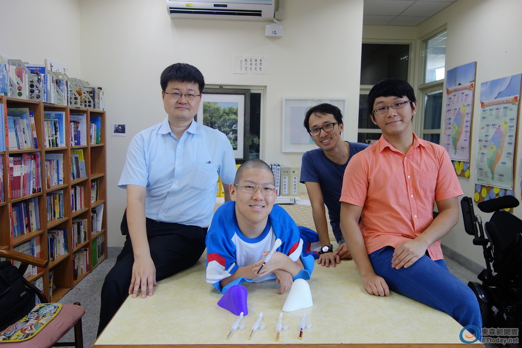 ▲北科大善用3D列印技術製作口咬筆,成功幫助罕病學生王宣翰。(圖/北科大提供)