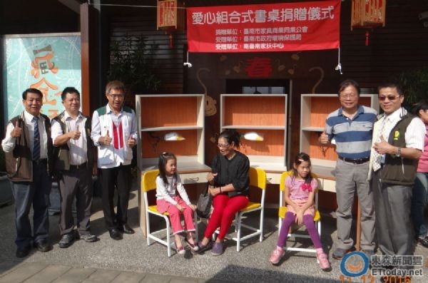 ▲40組的愛心書桌則由南台南家扶中心李保良代表接受,轉贈給弱勢家庭,場面溫馨且具意義。(圖/環保局提供)