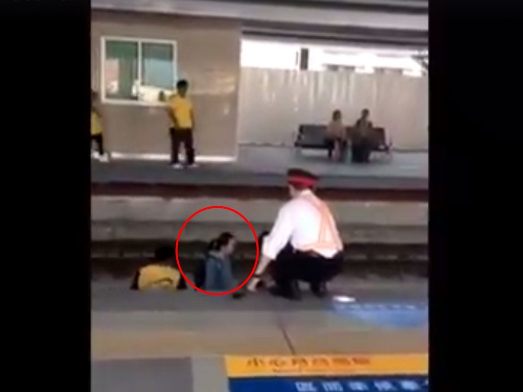 畫面中,只見女子呆立在月台中間,火車已在月台前緊急剎車,女子不發一語,最後路警及相關工作人員爬下去,將她帶走,沒有受傷。
