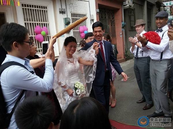 這場充滿著傳統與溫馨的訂婚儀式,就在邱家大園街上、老宅前的廣場搭棚舉行,也邀請從小看著邱家女兒長大的附近老鄰居們,來分享喜樂。儀式依台灣傳統古禮依序進行:新娘奉茶、媒人說好話、帶金戒指、金項鍊、跪別父母、上花轎…等禮儀,引起邱垂貞二女婿Michael Tsu-Lin Chen,專程自美國來台參加婚禮的80多位好友,大感好奇又開心。