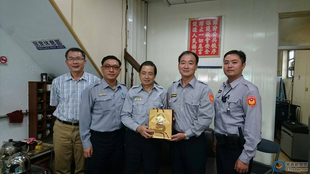 ▲台南市警局長黃宗仁,派歐木標警政監至第三分局海南派出所頒發「破案茶」嘉勉同仁辛勞。(圖/記者林悅翻攝)