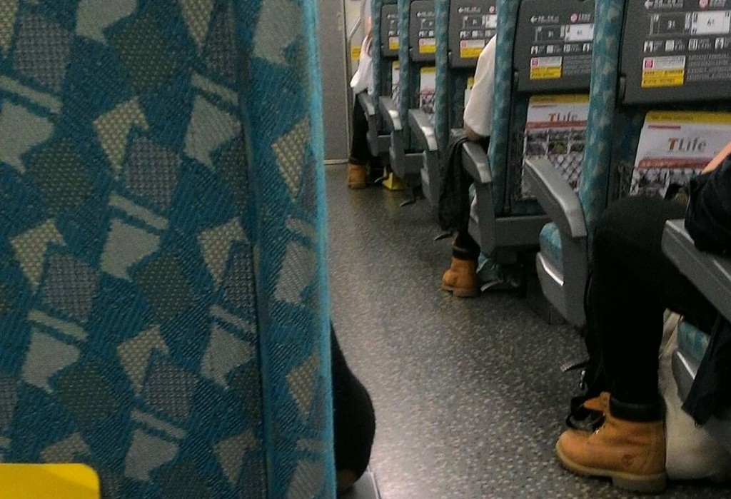網友昨日在「Dcard」貼文表示,「小弟前陣子搭高鐵,坐下位置後往右前方一瞥,超扯的...3個人都穿一樣的鞋,感覺好像使用影分身之術」。只見3人前後隔有空座位,重點是不僅鞋get到同款,連褲子顏色都一樣。