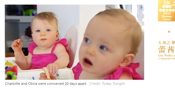 澳洲一對夫妻日前生了一對雙胞胎女兒,經過檢查發現,這名媽媽出現了罕見的「異期複孕」(superfoetion)。兩姊妹的胚胎形成相差10天,儘管在同一天出生,但2個女兒的身型和血型卻不一樣。