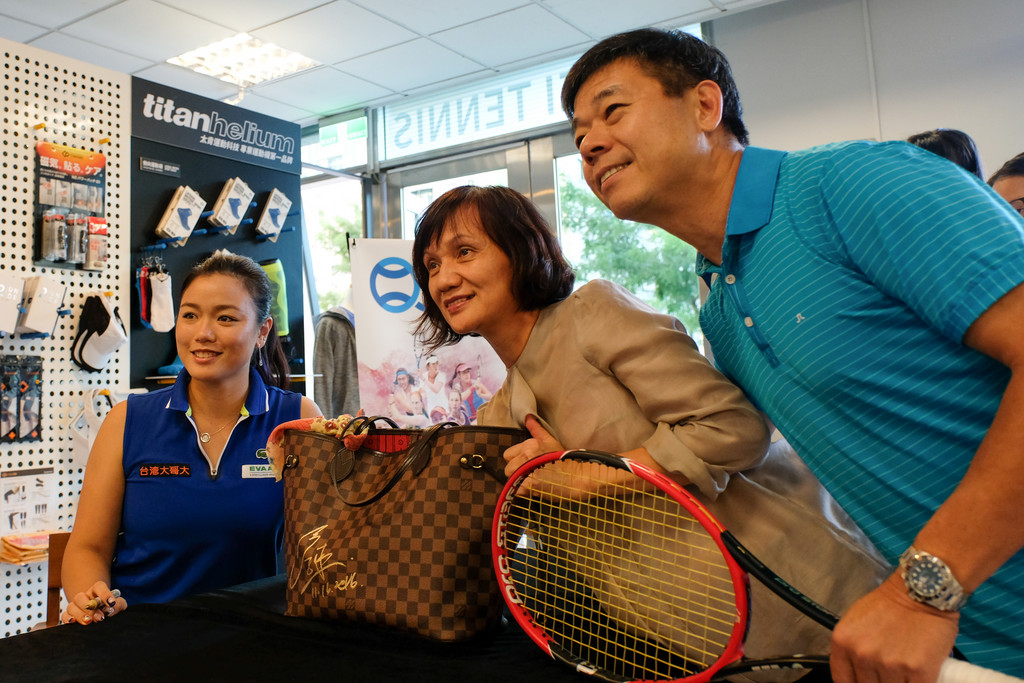 台北海碩盃16日舉辦瞻遠然冠軍簽名會,吸引許多球迷,其中更有一位鐵粉拿下身上背的名牌包,要請詹詠然簽名,當下詹詠然還驚呼,「確定要簽在包包上?」