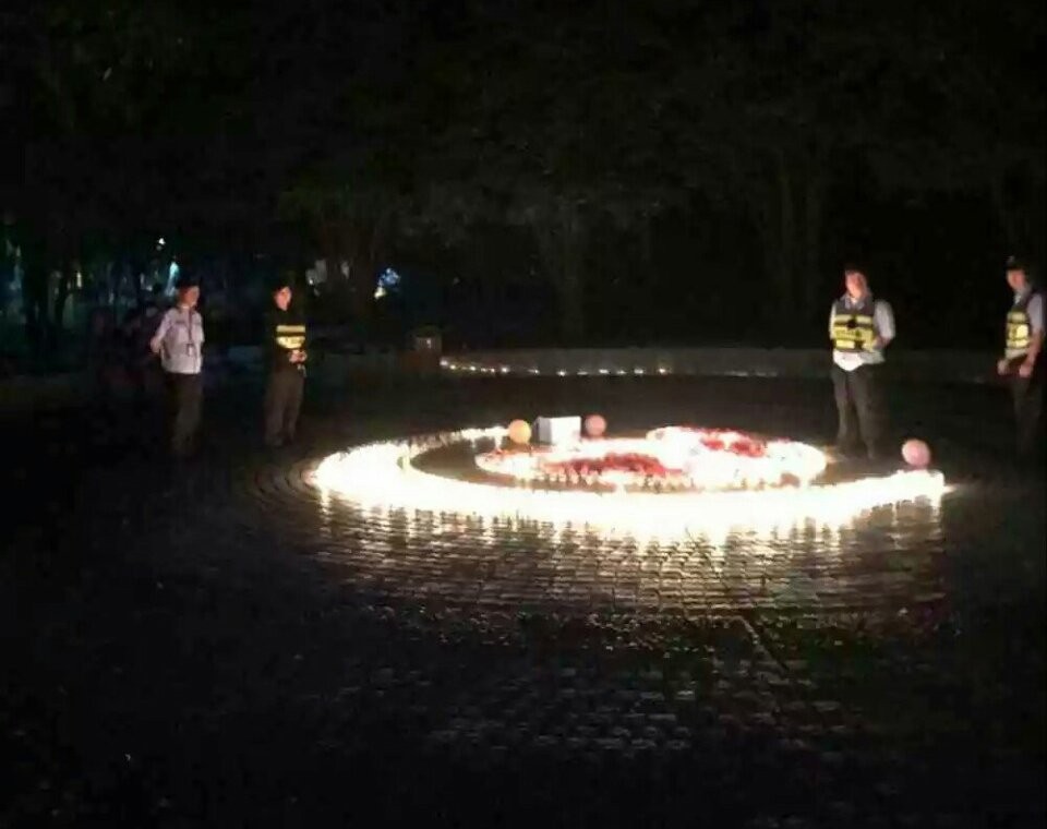 廣西大學一名男生準備和心儀的女生告白,15日晚上選擇在校園一處擺設心型蠟燭,在璀璨燭光下等待女主角的出現,好不容易準備要在浪漫的氣氛下告白,但接下來讓男主角意想不到的結果,居然是引起保全大叔的注意,隨後將他給帶走。