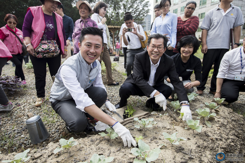 ▲新竹市長林智堅與環保署長李應元親手種下長年菜。