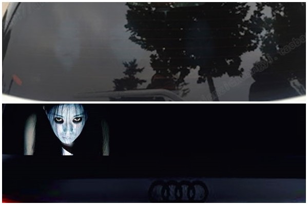 大陸濫用遠光燈問題嚴重,有車主就想出「鬼點子」,在車廂後玻璃貼上逼真的恐怖圖案反制,結果竟在淘寶網上大賣。
