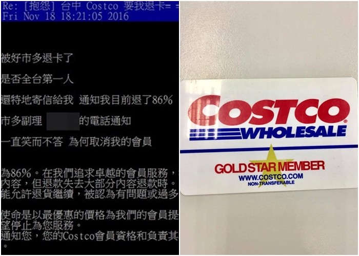 有網友於PTT賣場版表示,「我真的被好市多退卡了,不知道是否全台第一人,好市多還特地寄信給我,通知我目前退了86%,接到好市多副理的電話通知,不過他一直笑而不答,為何取消我的會員。」
