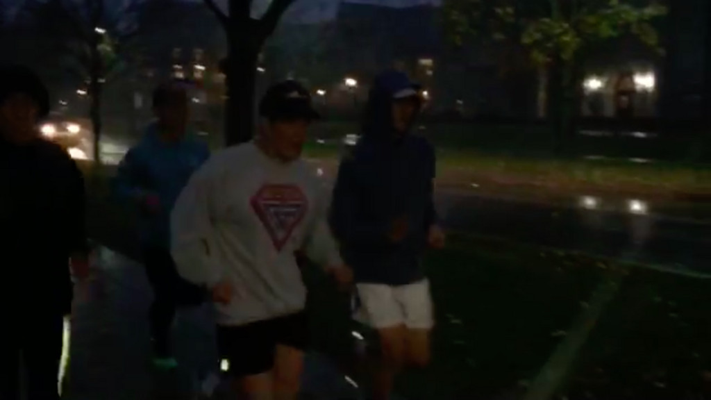 ▲馬英九芝加哥出訪時依舊堅持晨跑。(圖/馬辦提供影片截圖)