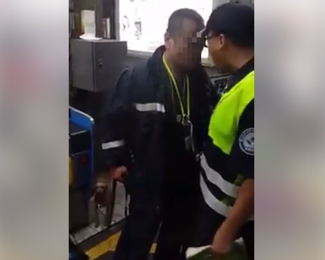 之前有祖孫3人抱狗進到松山車站的月台,執意要搭火車往台北,遭到路警和站務員制止,要求寵物必須裝進提籠裡,就狂罵「你吃飽太閒是不是?狗會熱死!」等情事,有網友昨天又在中壢站直擊,一名中年大叔牽著狗進站,遭到保全攔下,講話大聲還把口水噴到保全臉上,「你講甚麼,大聲點啊!你噴我口水幹甚麼?」