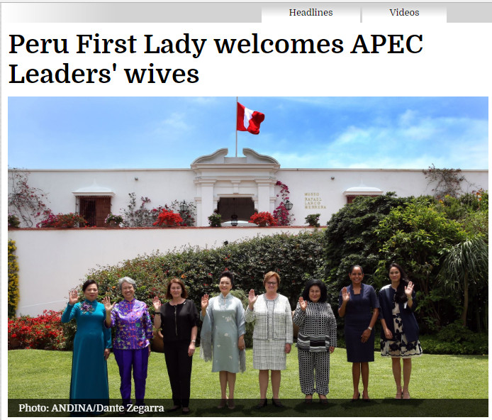 陪同我國領袖代表、親民黨主席宋楚瑜參與亞太經濟合作會議(APEC)的宋鎮邁,在秘魯時間19日參加領袖代表眷屬行程,參觀秘魯當地博物館。APEC代表團顧問李鴻鈞指出,宋鎮邁與中共總書記習近平夫人彭麗媛、新加坡總理李顯龍夫人何晶一同在博物館花園享用午餐,氣氛融洽。