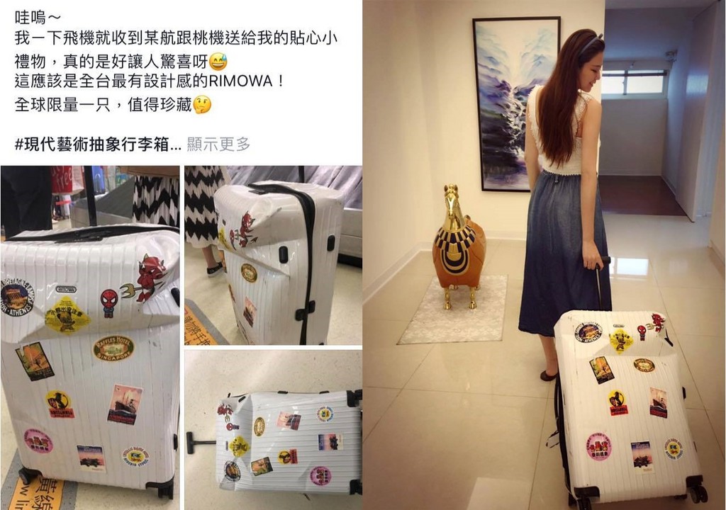 「他們說這麼有美感的行李箱,經過師傅的巧手修復後,還是無法還原,所以決定還我一個『全新的』!!!」但最後提到這行李箱是深藍色的,原來的白色停產了,捨不得原來的小熊出沒貼紙,但華航其實挺有誠意的。