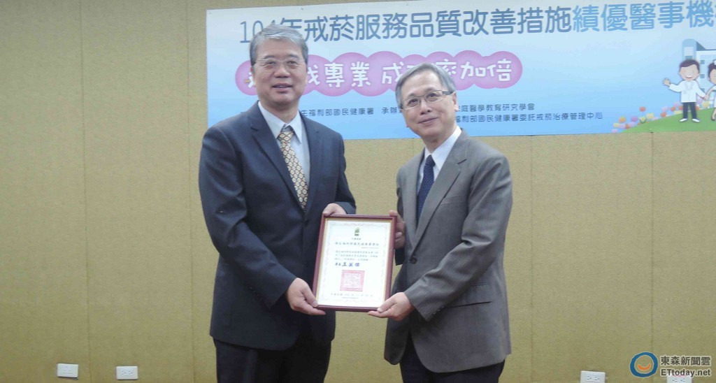 台南市衛生局與台南市醫療院所,致力推動二代戒菸服務,其中有10家榮獲衛福部國民健康署104年「戒菸服務品質改善措施」績優醫事機構,在台大醫院國際會議中心進行頒獎。