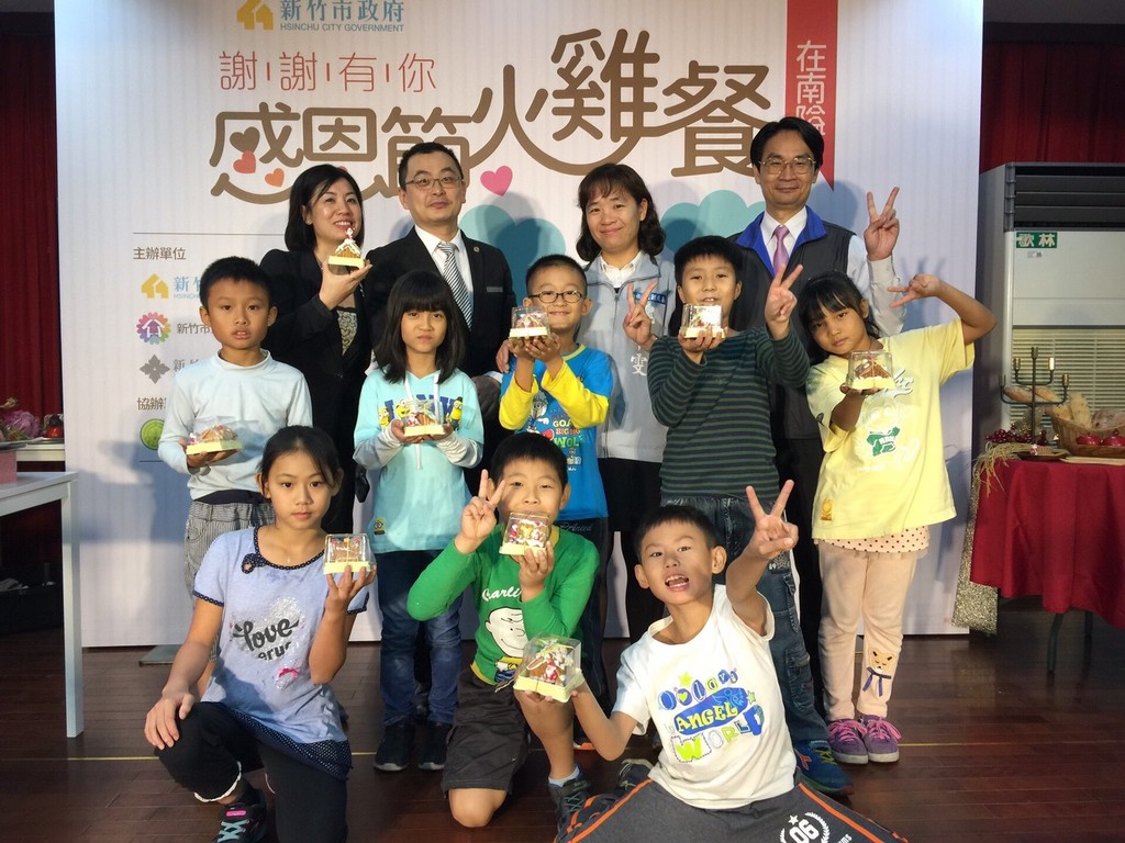 新竹市政府社會處21日結合新竹美麗信酒店,在香山區南隘國小邀請海山聯里弱勢家庭的31位小朋友,提前共度感恩節,讓孩子們親手製作薑餅屋及品嚐火雞餐,市長林智堅表示,期盼更多愛心企業投入兒童照顧服務,讓城市每個角落的孩子都有機會參與不同活動,感受愛和溫暖。