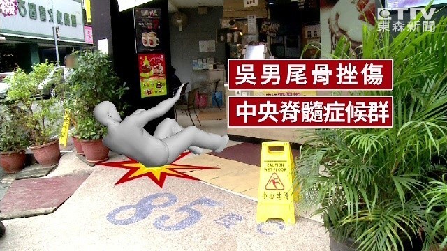 南投草屯一名吳姓男老師,4年前到碧山路上的某咖啡店消費時,卻因為地板濕滑,不小心摔倒,造成尾骨挫傷和中央脊髓症候群,因此提告求償,一審認為業者有疏失,判賠台中高分院,業者不服上訴,台中高分院二審則判22萬2千多元,原因是法官認為,受傷導致勞動力減損求償只有2年時效,追加求償時已過了時效。