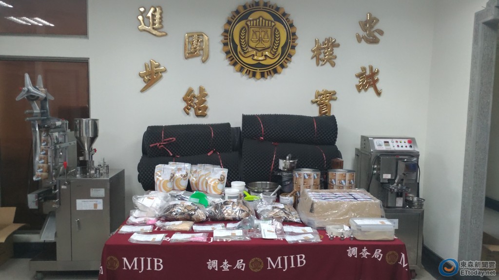 ▲調查局新北市調查處首破毒咖啡包、搖頭丸自動化生產工廠,起出大批成品、半成品和製造機具與包裝袋。(圖/記者孫曜樟攝)