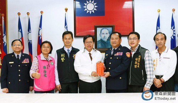 桃園市長鄭文燦22日上午前往大溪分局,表揚市府警察局大溪分局及刑警大隊,迅速破獲大溪區銀樓搶案,並頒發10萬元獎勵金,鄭市長表示,警方於案發17小時內迅速破案,有效打擊犯罪,相信可讓市民對治安安心,並充分展現警察打擊犯罪能力。